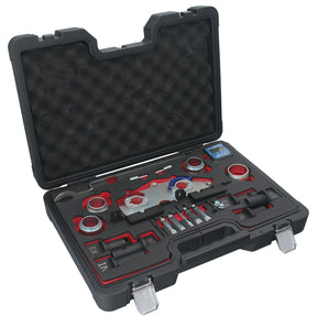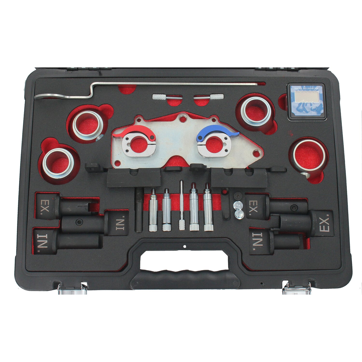 Dieser professionelle Steuerzeiten-Werkzeugsatz wurde speziell für die präzise Einstellung und Überprüfung der Nockenwellensteuerung bei VAG-Motoren entwickelt, einschließlich der EA 211-Serie (EVO 4-Zylinder TSI ACT, 3- & 4-Zylinder ohne ACT, TFSI CoD, BlueGT TSI ACT) oraz älterer 1,0L, 1,5L und 1,6L MPI- sowie TSI-Benzinmotoren. Das Set ermöglicht eine präzise Einstellung der Nockenwellen nach Herstellervorgaben, ohne auf computergestützte Ausrichtungswerkzeuge angewiesen zu sein. Durch den Einsatz des mitgelieferten batteriebetriebenen digitalen Neigungsmessers und der Hochpräzisions-Adapter werden exakte Ergebnisse garantiert. Bei fachgerechter Anwendung ist keine Interaktion mit dem OBD-System des Fahrzeugs erforderlich.