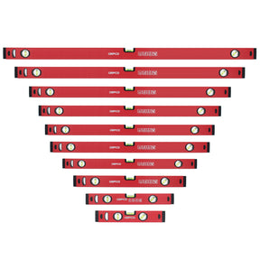 Ensemble de 10 niveaux à bulle professionnels en aluminium GEPCO avec 3 fioles de précision (30 cm + 40 cm + 50 cm + 60 cm + 80 cm + 90 cm + 100 cm + 120 cm + 150 cm + 180 cm).