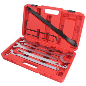 -> Conçu pour maintenir l'arbre de transmission du viscocoupleur sur BMW, Mercedes et Ford, et également pour retirer le connecteur visqueux sur le ventilateur du radiateur. Le kit permet au technicien de fixer la poulie de la pompe à eau dans sa position prévue tout en libérant simultanément le ventilateur de chauffage ;